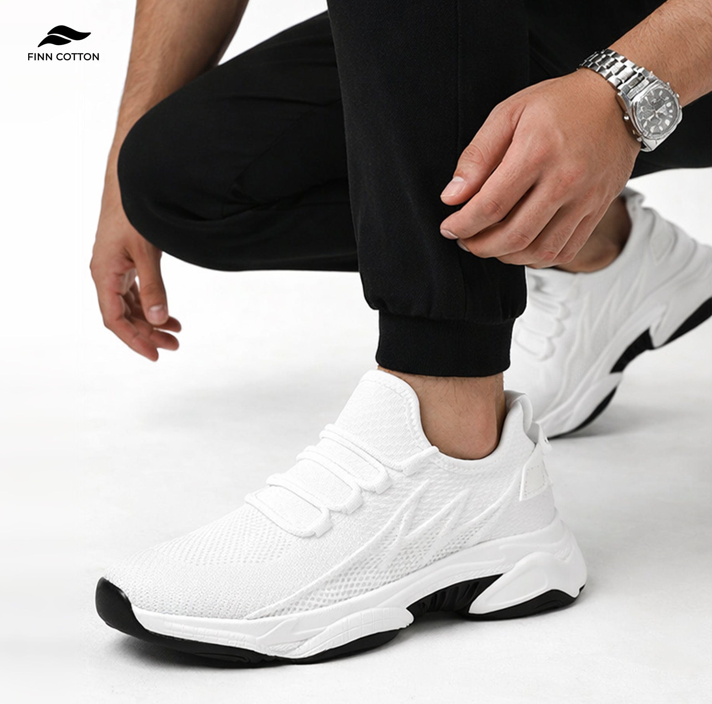Dare to go beyond ordinary with the Finn Cotton Mech 2.0, a monochrome powerhouse that blends architectural design with next-gen comfort. Layered synthetic “armor” panels and breathable mesh underlays create a robotic aesthetic, while a sculpted, oversized EVA midsole delivers plush cushioning and runway-worthy height.
